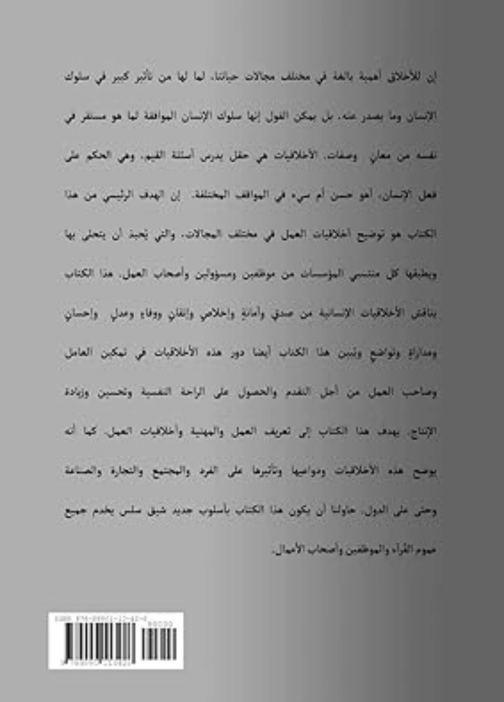 This book discusses human ethics including honesty, integrity, loyalty, perfection, fulfillment, fairness, compassion, politeness and modesty . The book explains the role of ethics in empowering both the employee and the employer to achieve good progress and development; find peace of mind; and improve productivity . The book aims to define workmanship, professionalism and work ethics . It also clarifies what these are, their causes and how they influence individuals, society, commerce, industry and even nations . We have endeavoured to produce the book in a new, appealing and interesting style for the benefit of general readers and of employees and employers in particular
